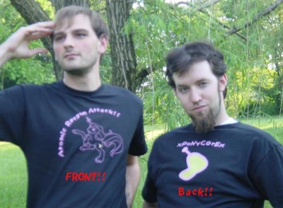 May 21- I am SOOOOO sorry about our show last night getting cancelled at the last moment. It was lame as crap, but out of the hands of anyone that could help. In good news we got shirts made! And stickers! And a few new songs written! And stuff! Here's a picture of the shirts, click on it to make it, you know...bigger. Oh, by the way; the new Aquabats album is freaking amazing.