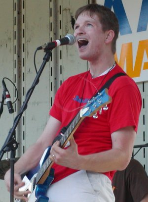 October 3- The Big One V festival last Saturday was a smashing pumpkin! Kids these days love thier on-demand cell phones, on-demand interwebs and on-demand penguin duplicators....ArA brought out the on-demand most pit. If you were there you know what I mean. Also, Jesse and I pwned n00bs on the playground. Booya. In other news Clint and I recorded the theme song for a video game our friend is making. It'll be on the website at some point for yous kids to download with your on-demand interweb boxenz. Oh, if you live in Richmond come see us in November. It's free. Here's a pic of Clint from last weekend, on-demand.